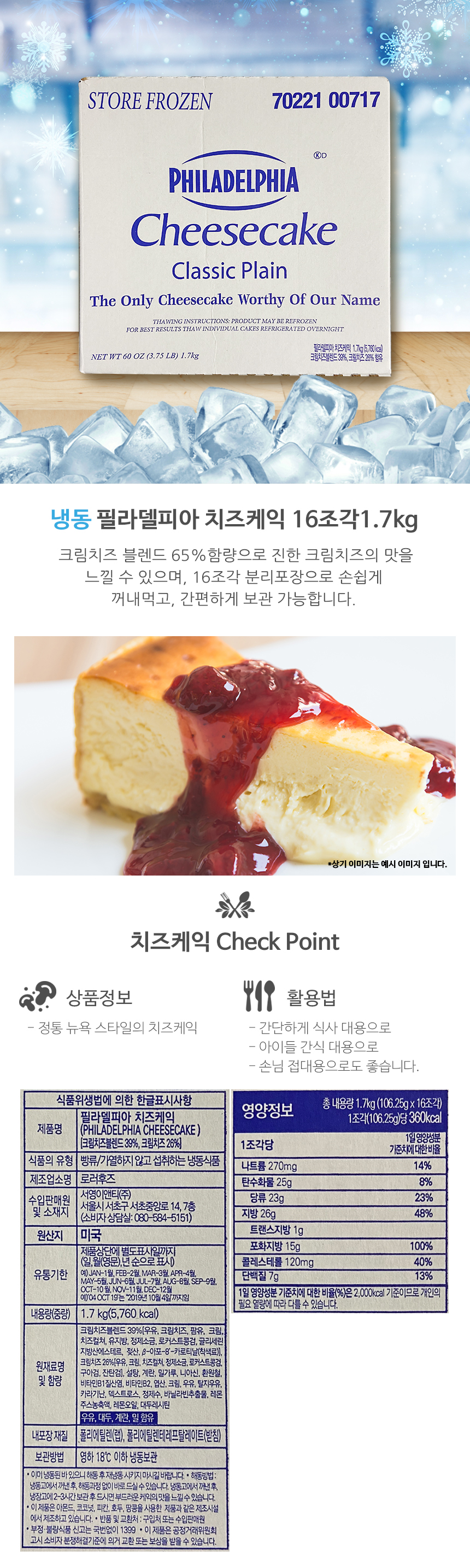 크림치즈블랜드39%, 크림치즈26%, 설탕, 계란, 밀가루, 니아신