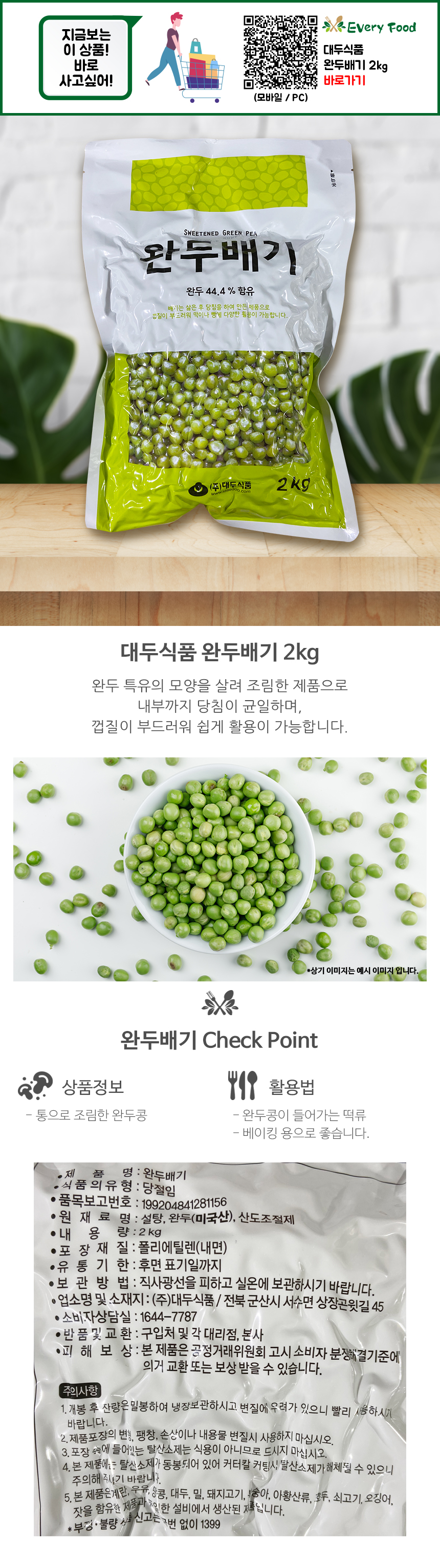 완두콩이 들어가는 떡류나 베이킹 용으로 적합.