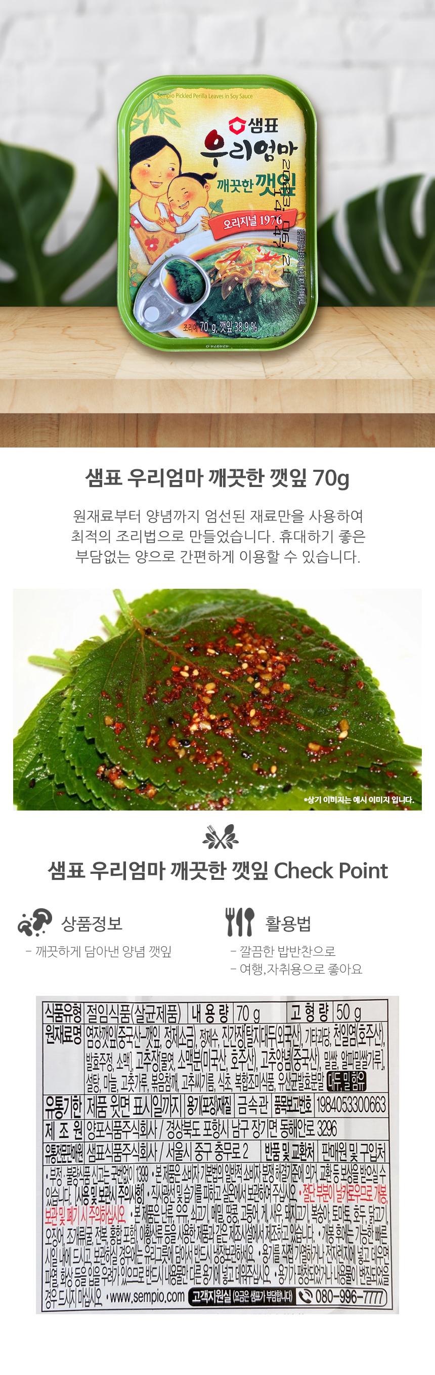 염장깻잎(중국산), 정제수, 진간장, 기타과당, 천일염, 고추장