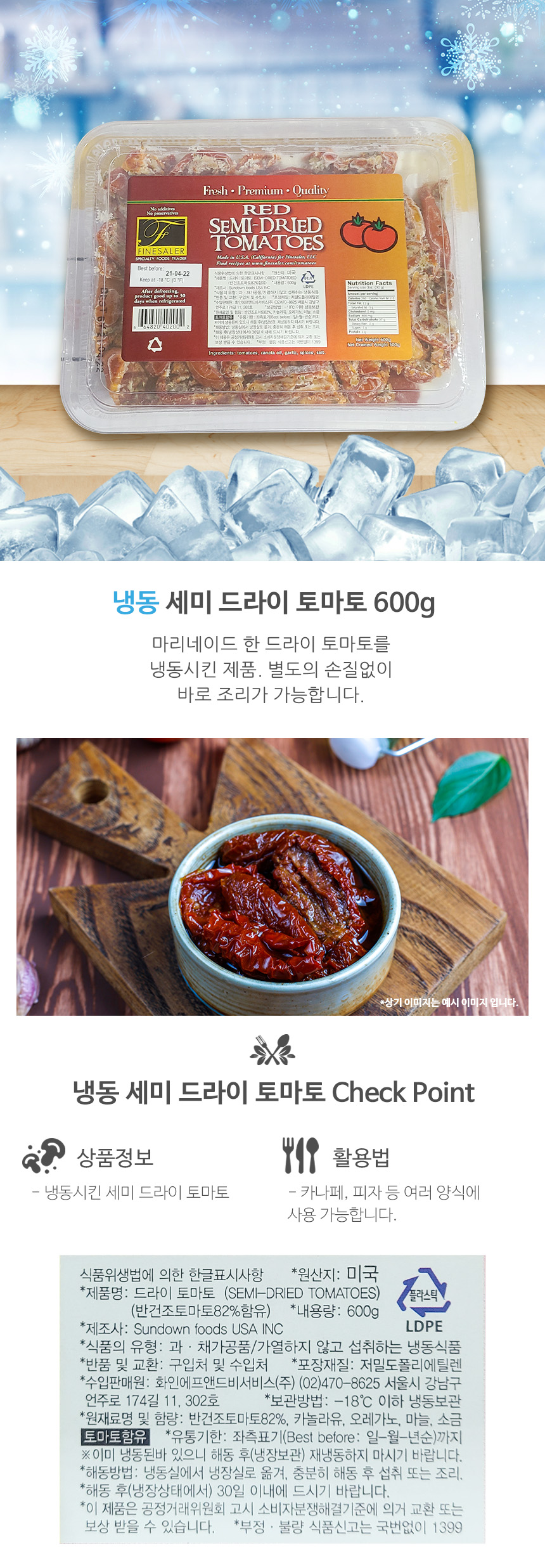 마리네이드 한 드라이 토마토를 냉동시킨 제품.