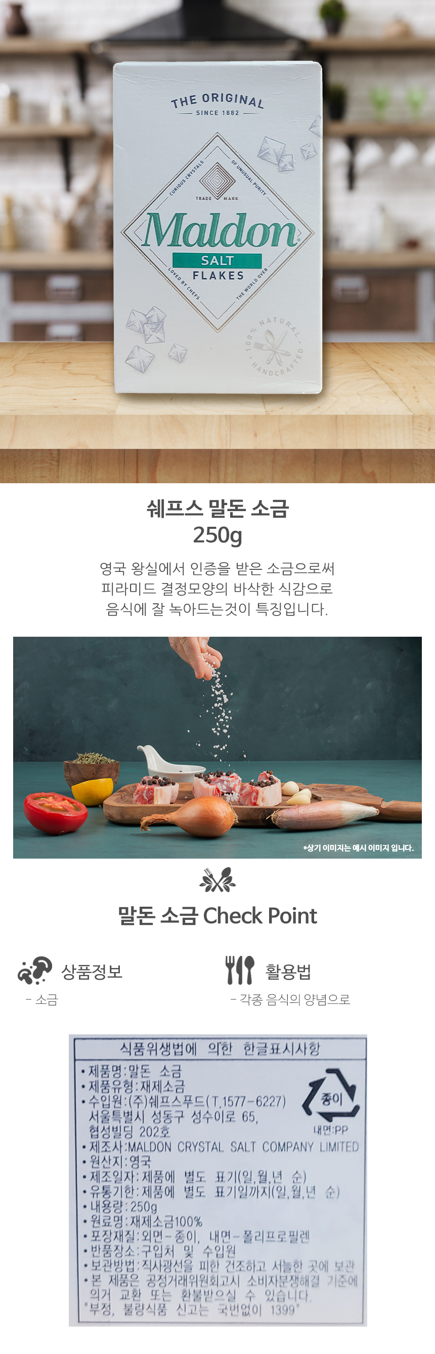 피라미드 결정모양의 바삭한 식감으로 음식에 잘 녹아드는 것이 특징인 제품.