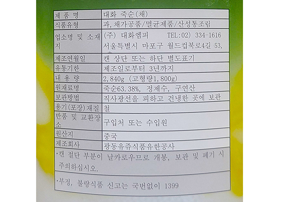 신선한 죽순을 채 썰어 캔에 담아 보관 및 사용이 편리한 제품