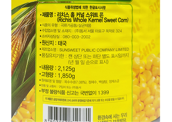 옥수수87.06%, 정제수, 백설탕, 정제소금